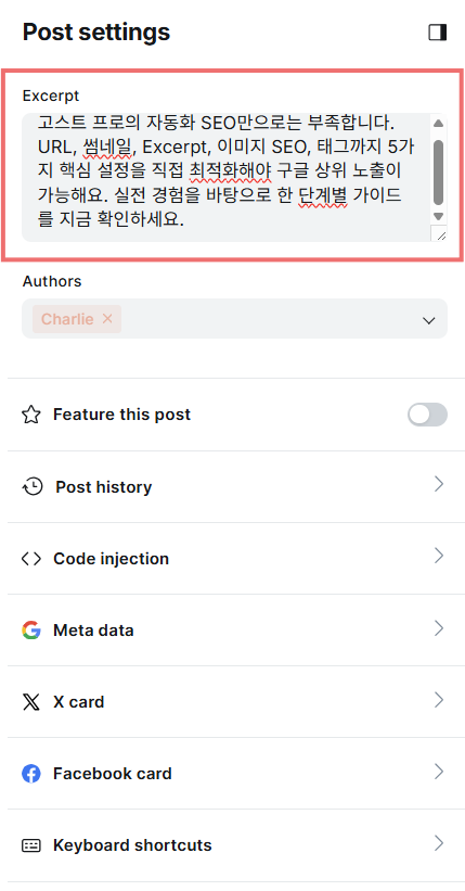 많은 블로거들이 Excerpt와 Meta Description을 혼동합니다. 고스트 프로에서는 둘 다 설정할 수 있는데, 각각의 역할과 차이점을 명확히 알고 전략적으로 활용해야 해요.