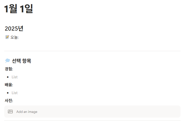 이제 준비는 끝났습니다. 오늘부터 저는 매일 밤 노션을 열어 하루를 기록할 것입니다.